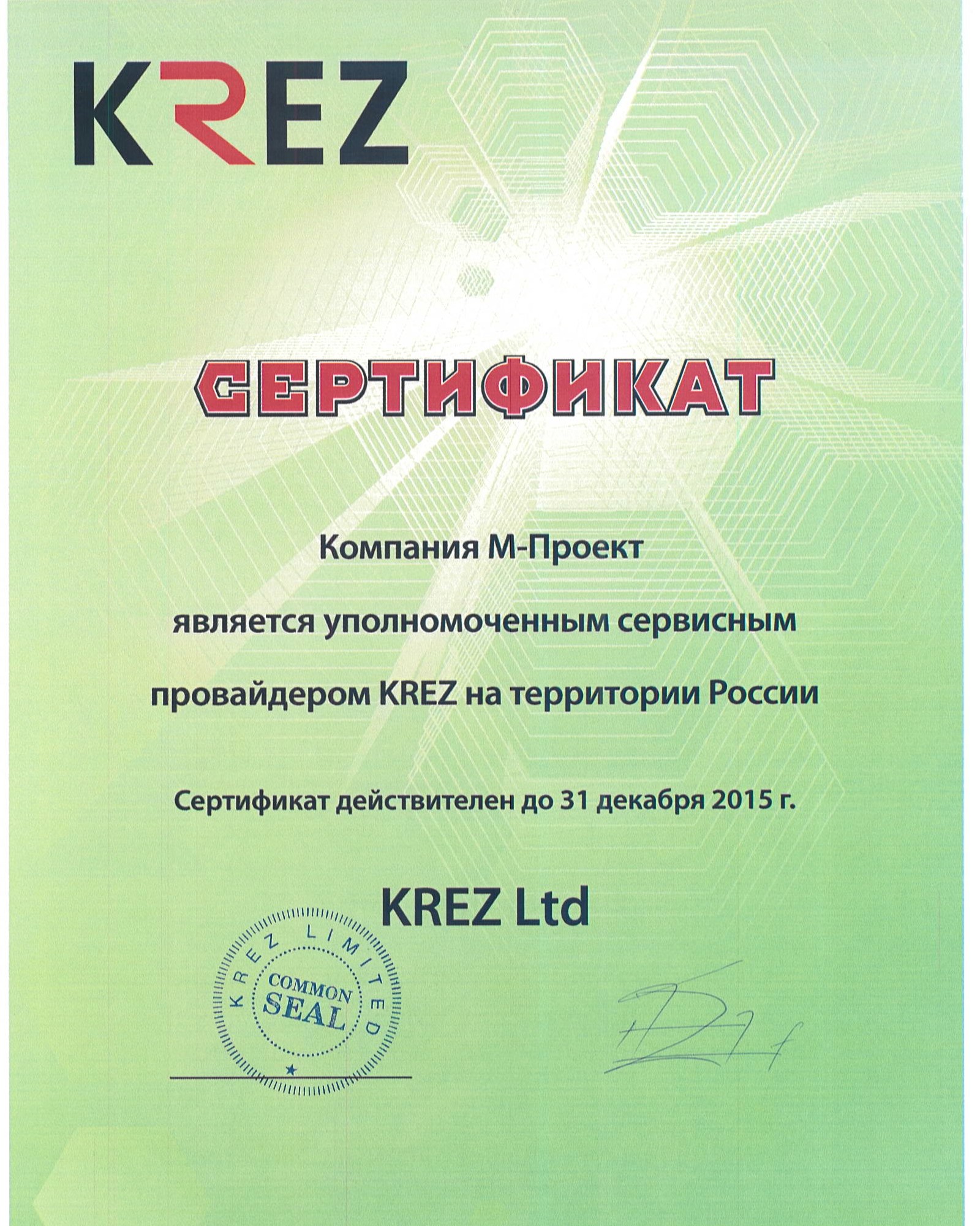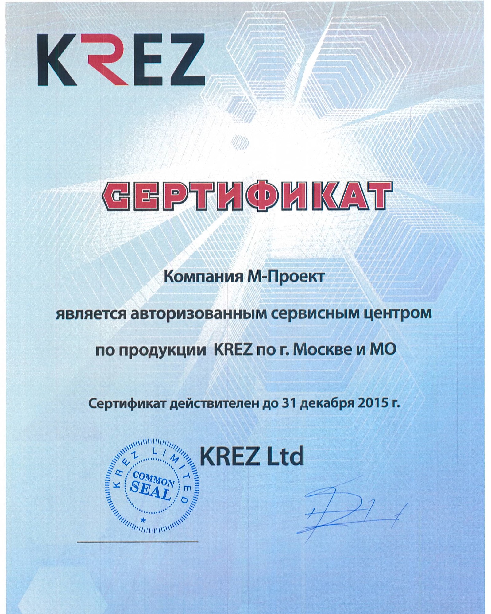 Данные сертификаты подтверждают, что компания «М-Проект» является Авторизованным сервисным и бизнес-партнером компании Krez
