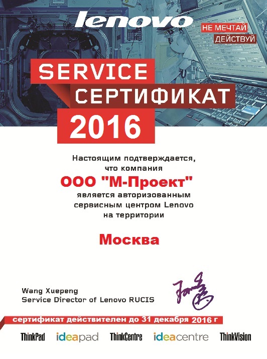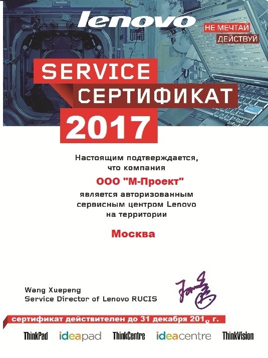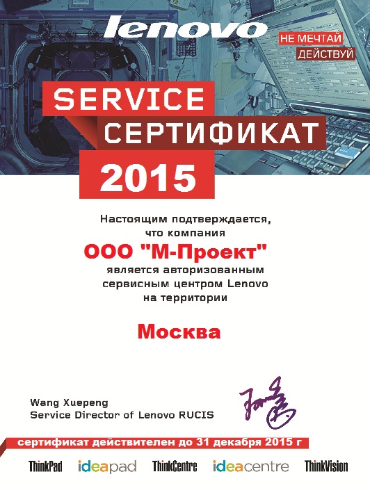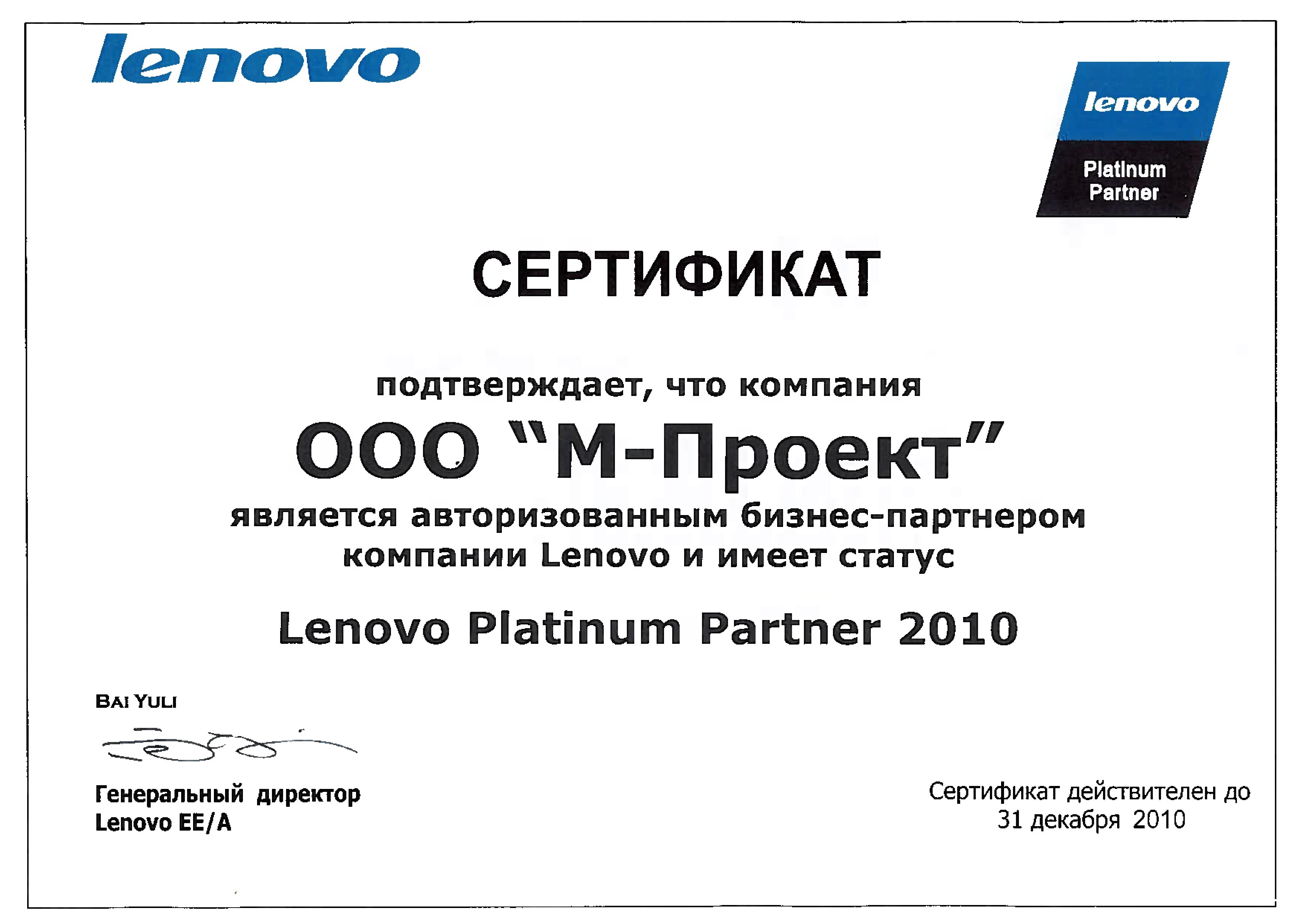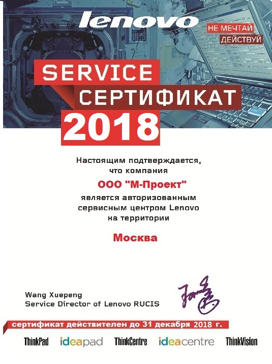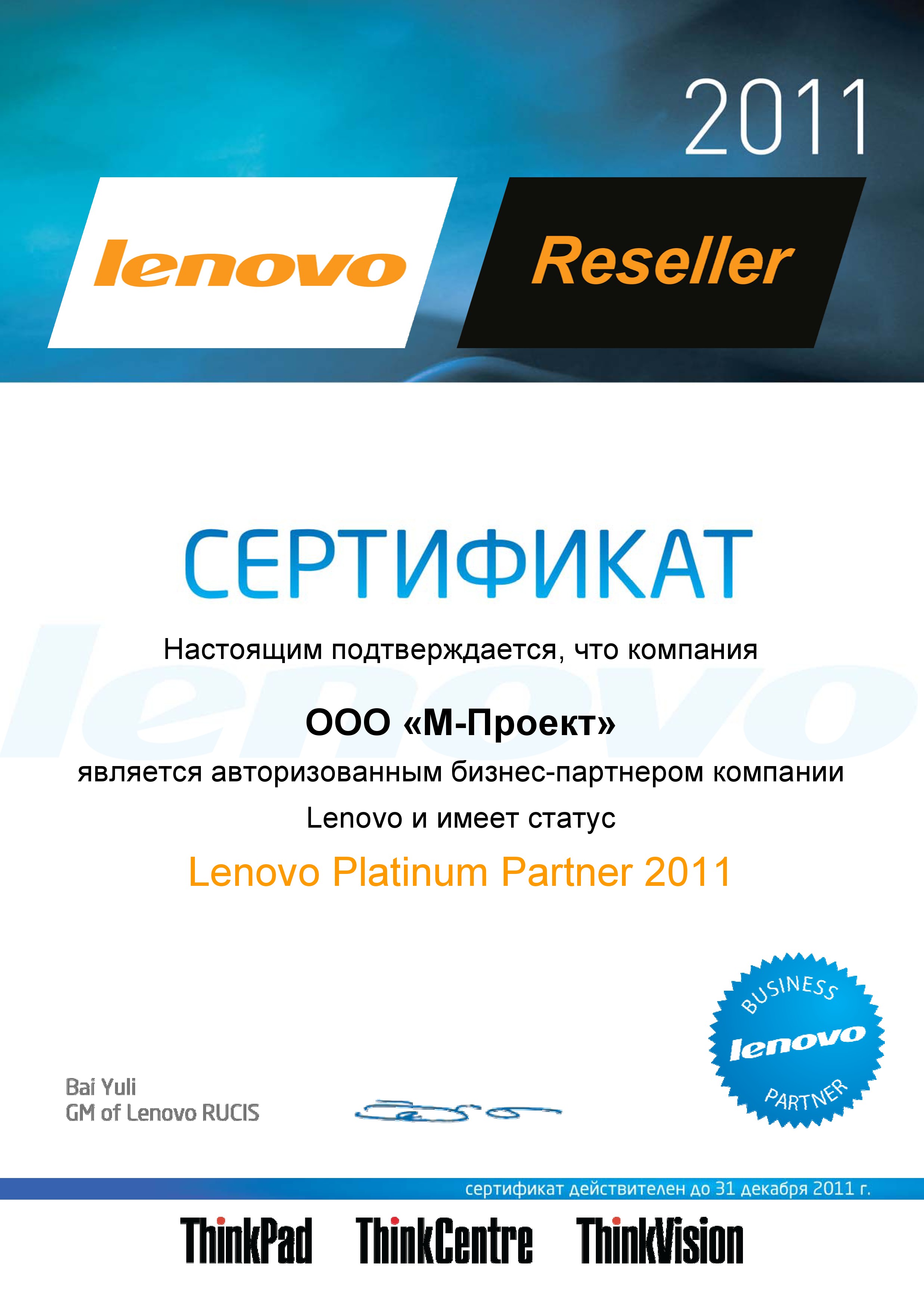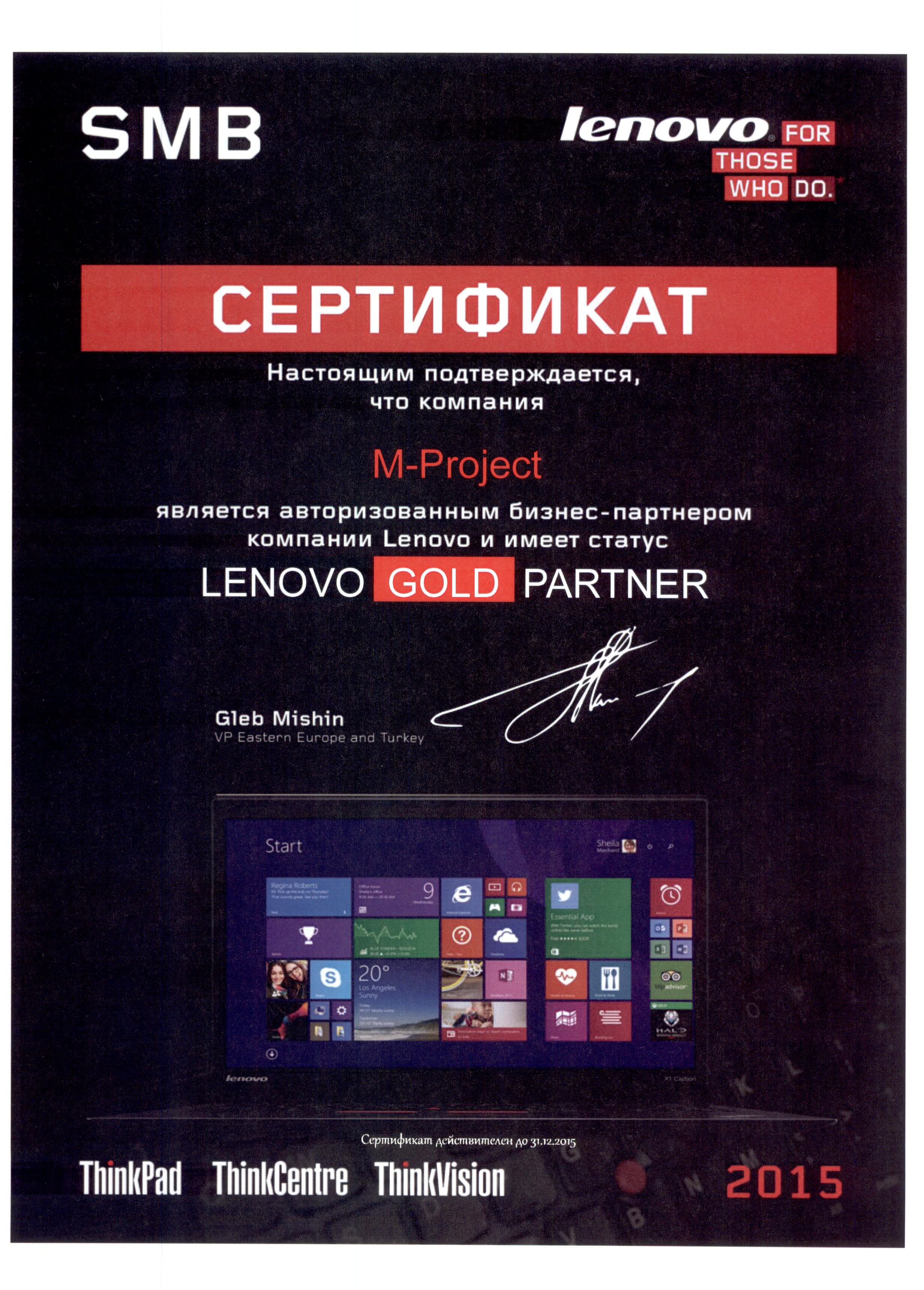 Данные сертификаты подтверждают, что компания «М-Проект» является Авторизованным сервисным и бизнес-партнером компании Lenovo