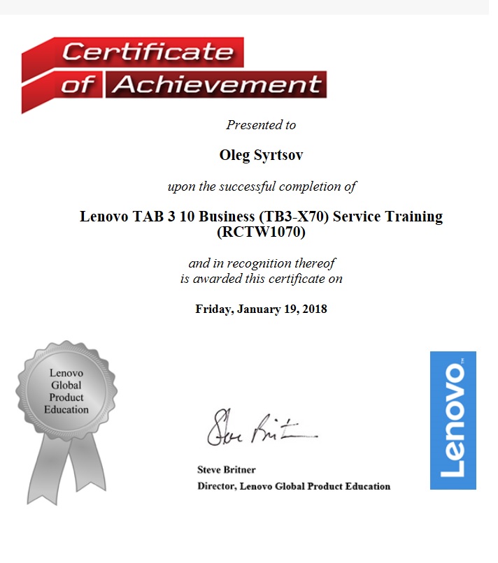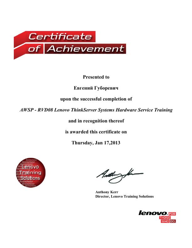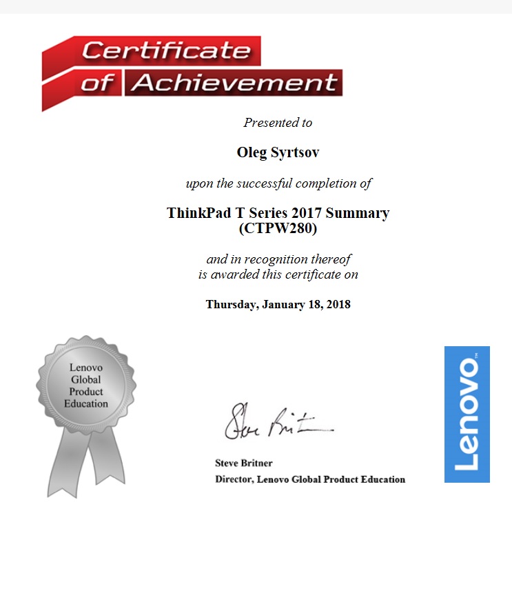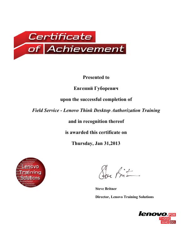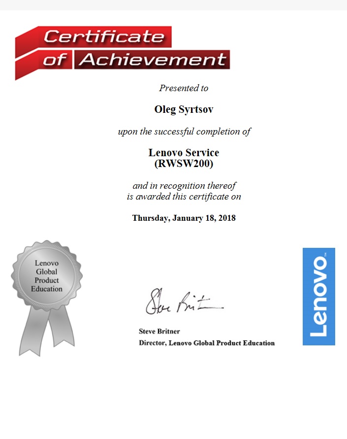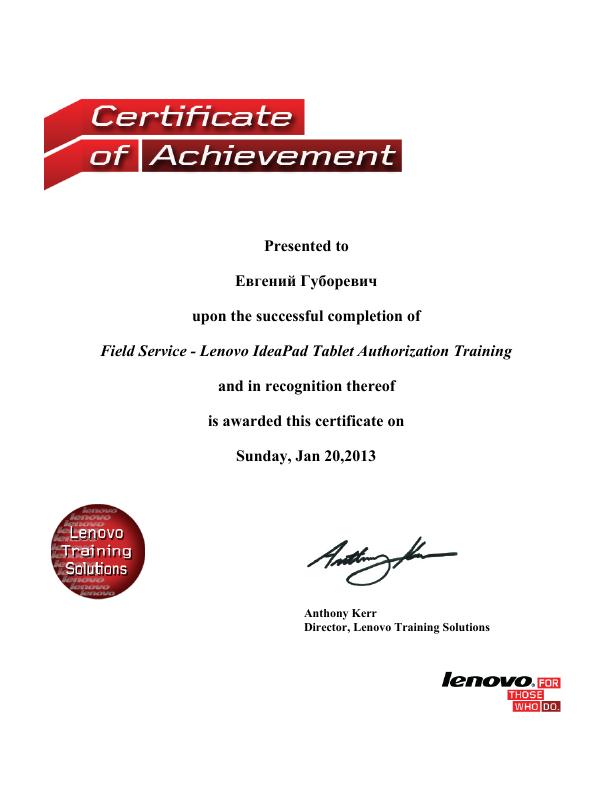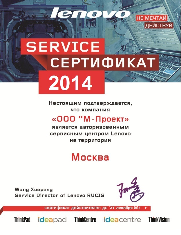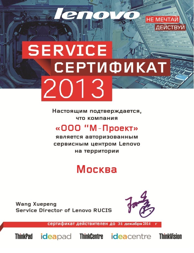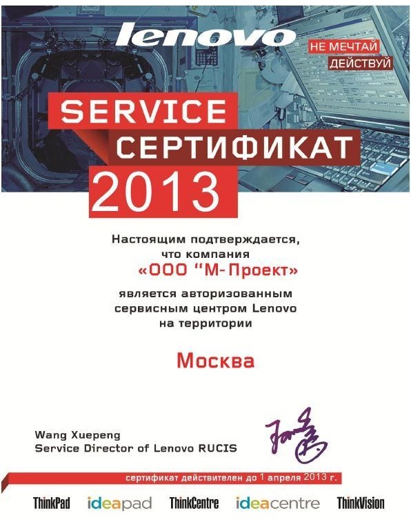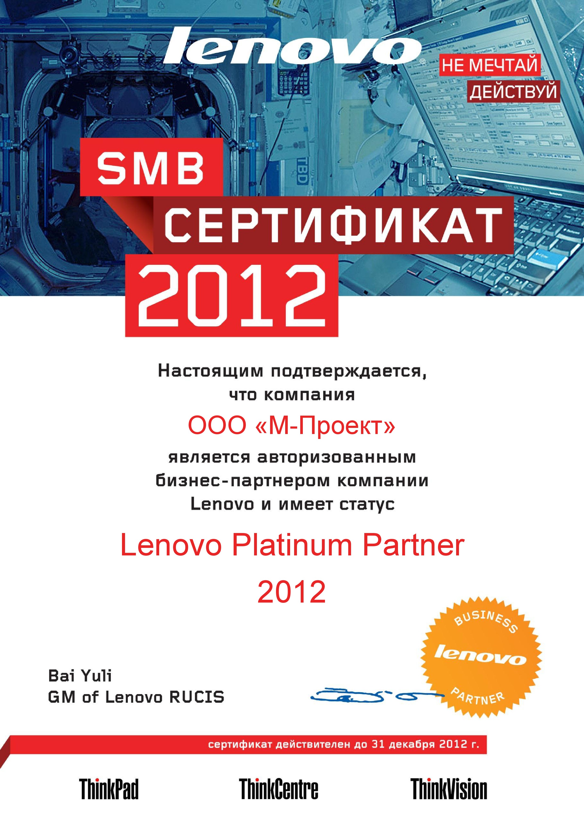 Данные сертификаты подтверждают, что компания «М-Проект» является Авторизованным сервисным и бизнес-партнером компании Lenovo