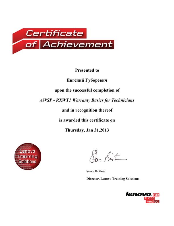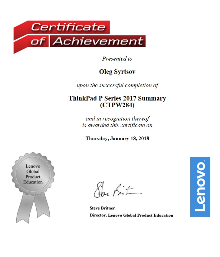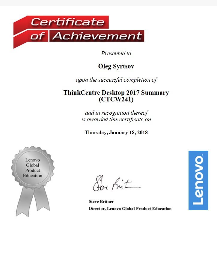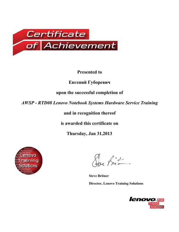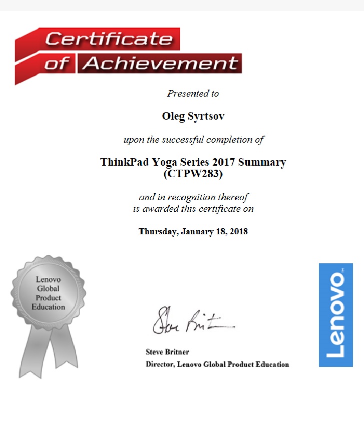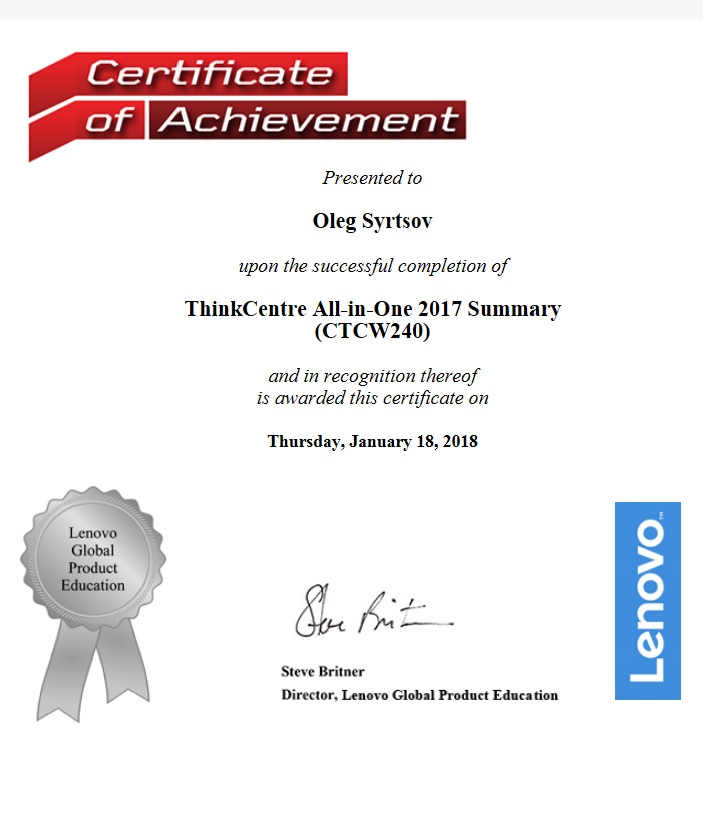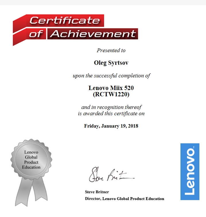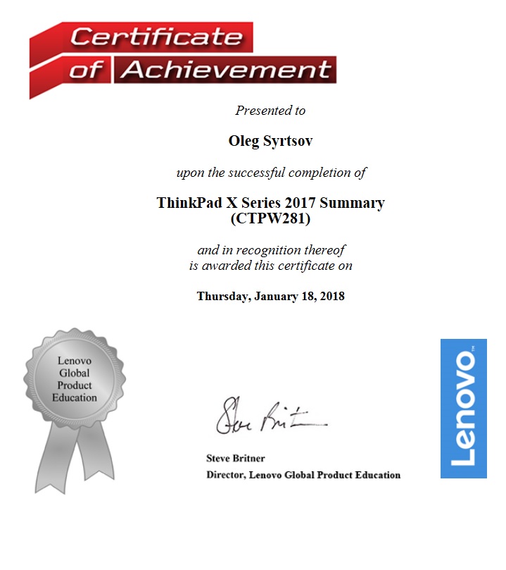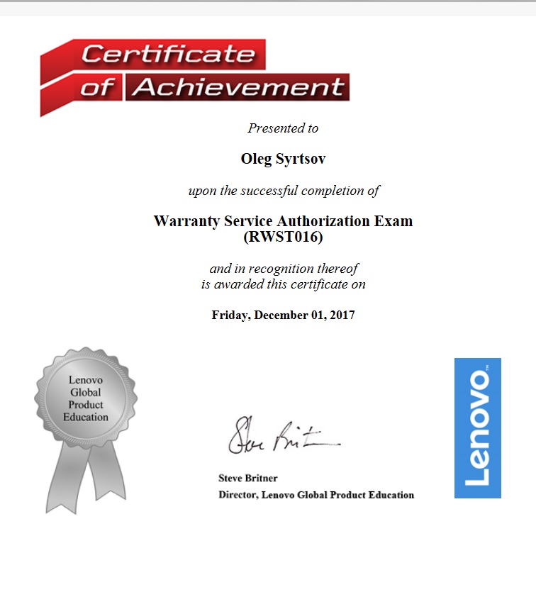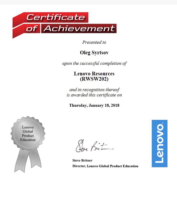 Данные сертификаты подтверждают, что компания «М-Проект» является Авторизованным сервисным и бизнес-партнером компании Lenovo