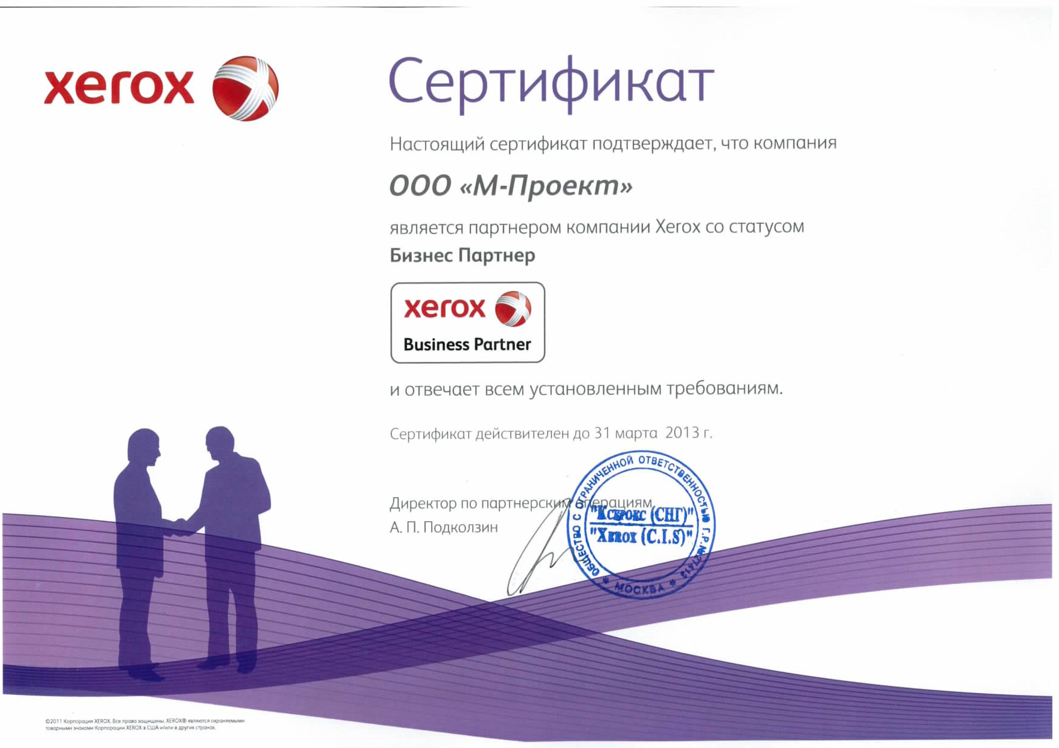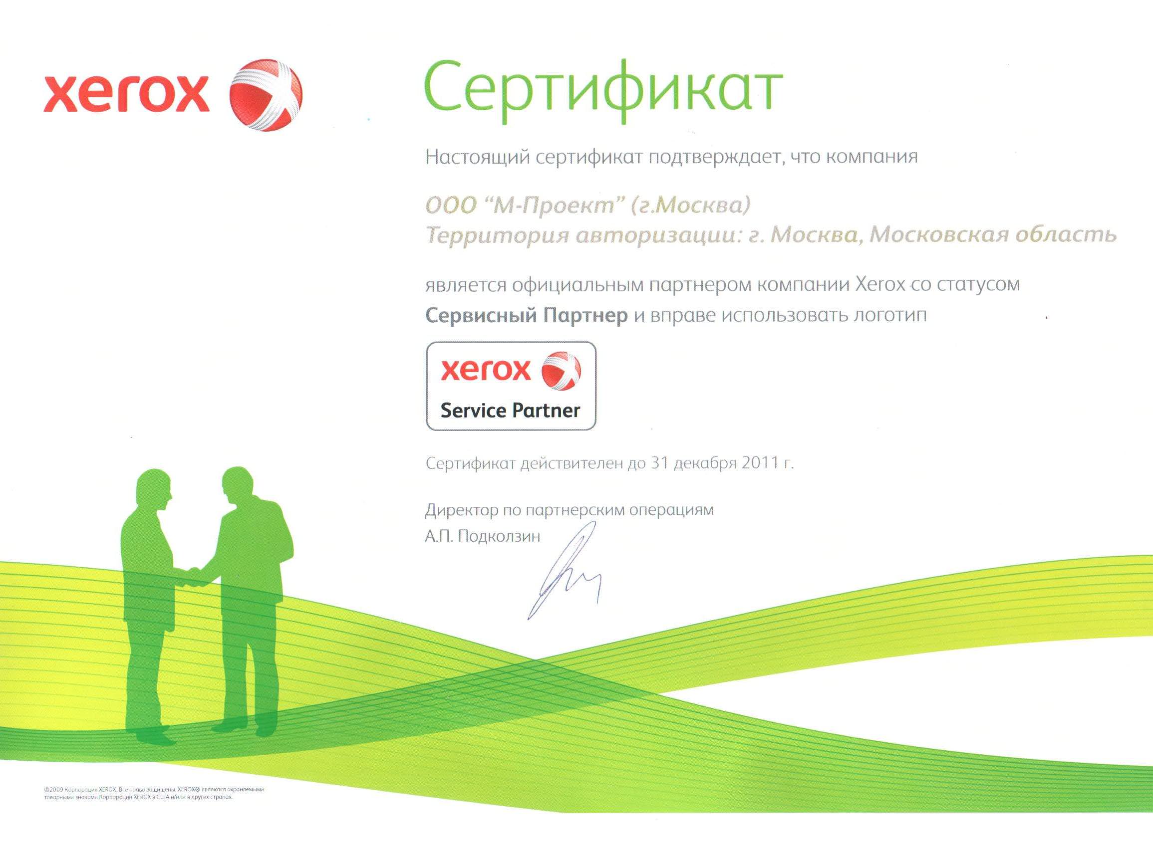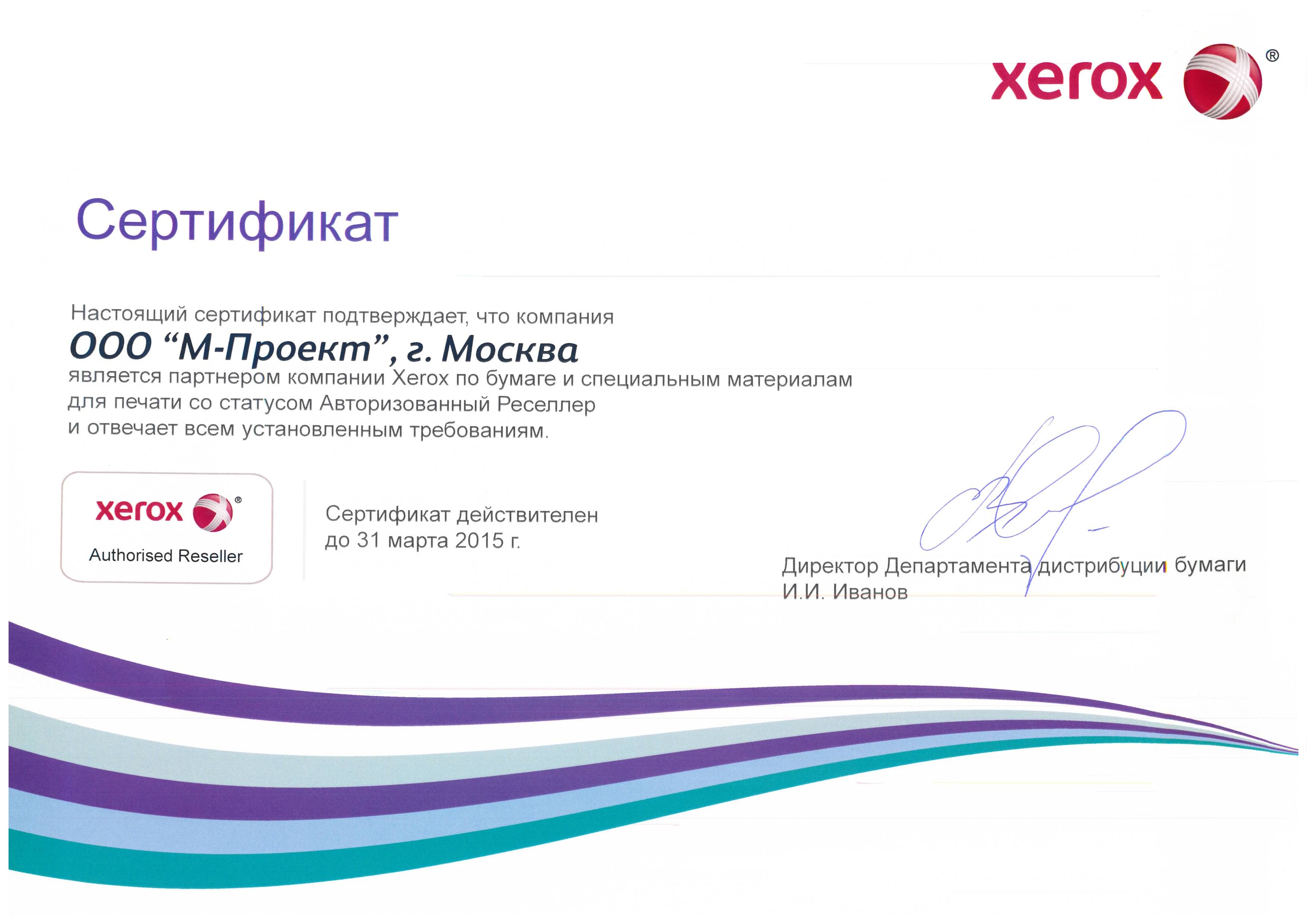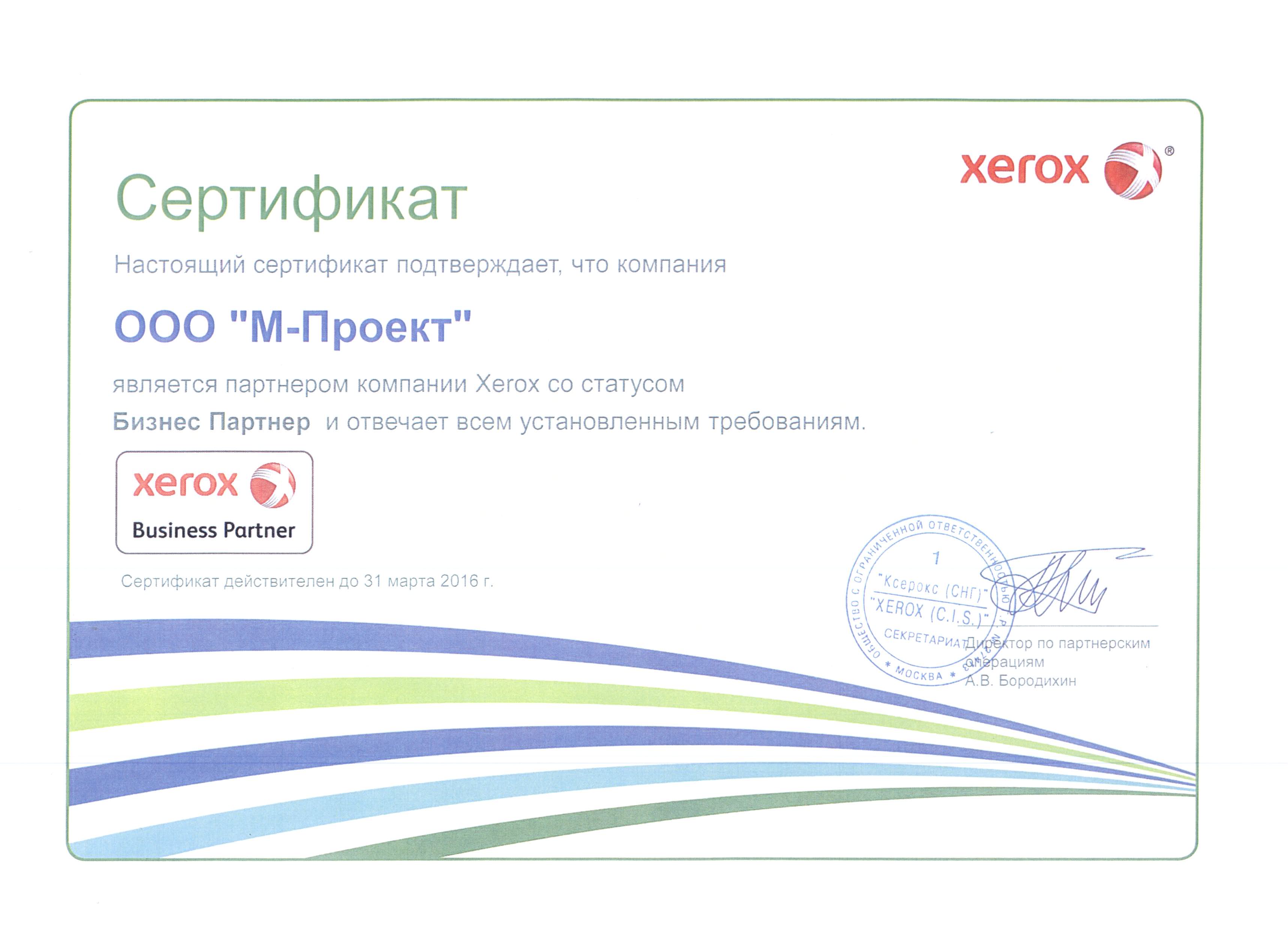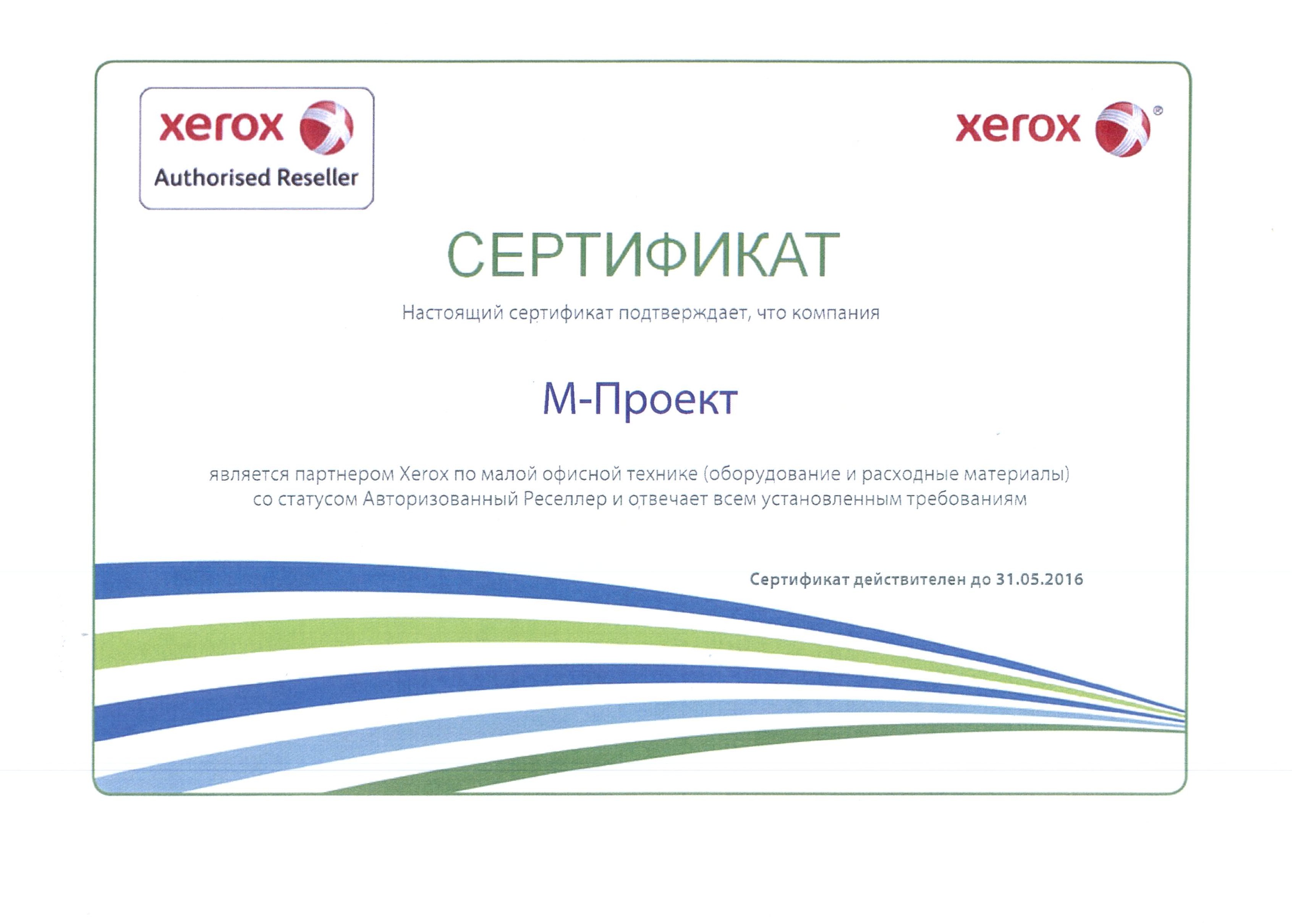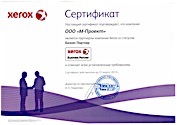 Данные сертификаты подтверждают, что компания «М-Проект» является Авторизованным сервисным и бизнес-партнером компании Xerox
