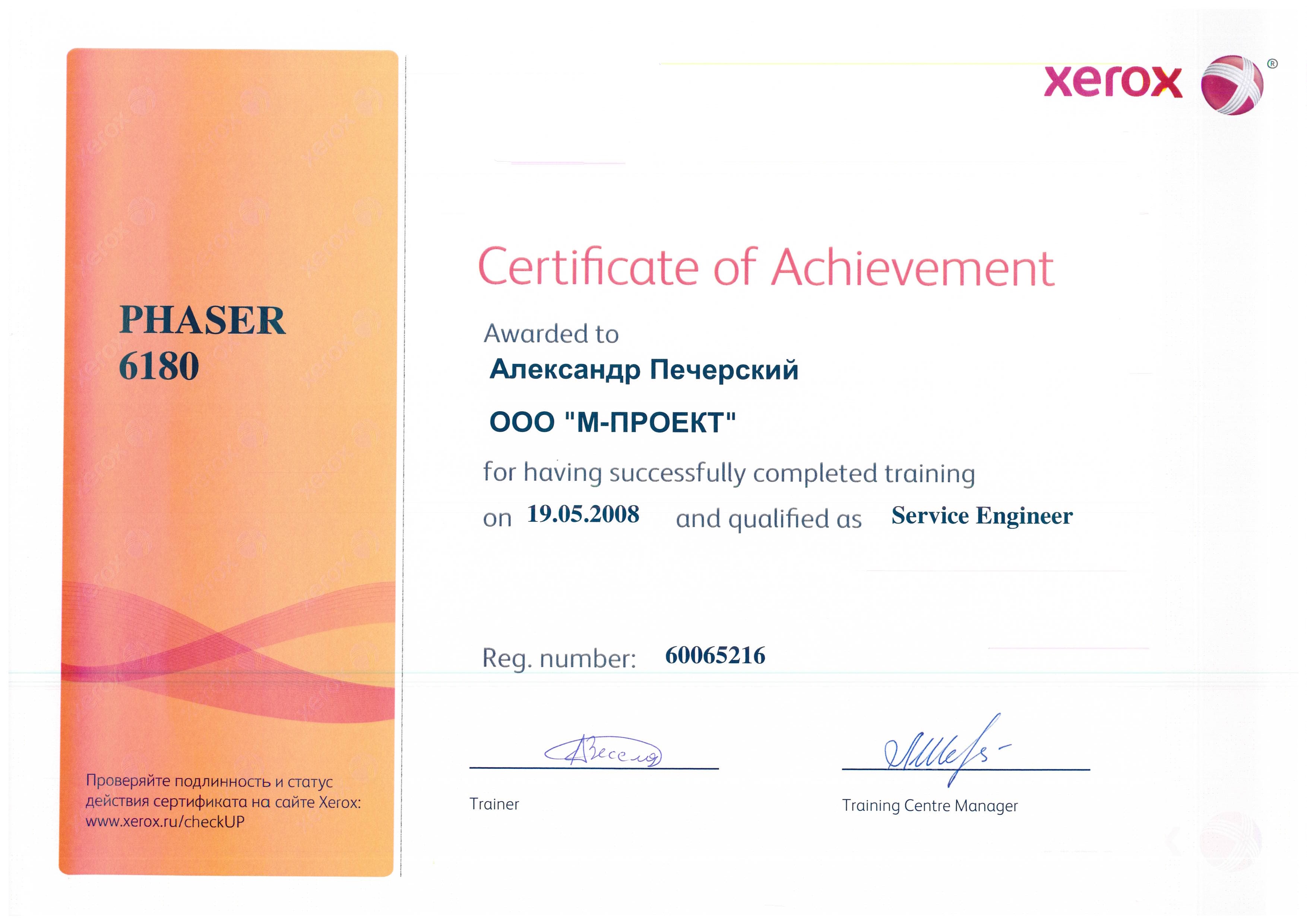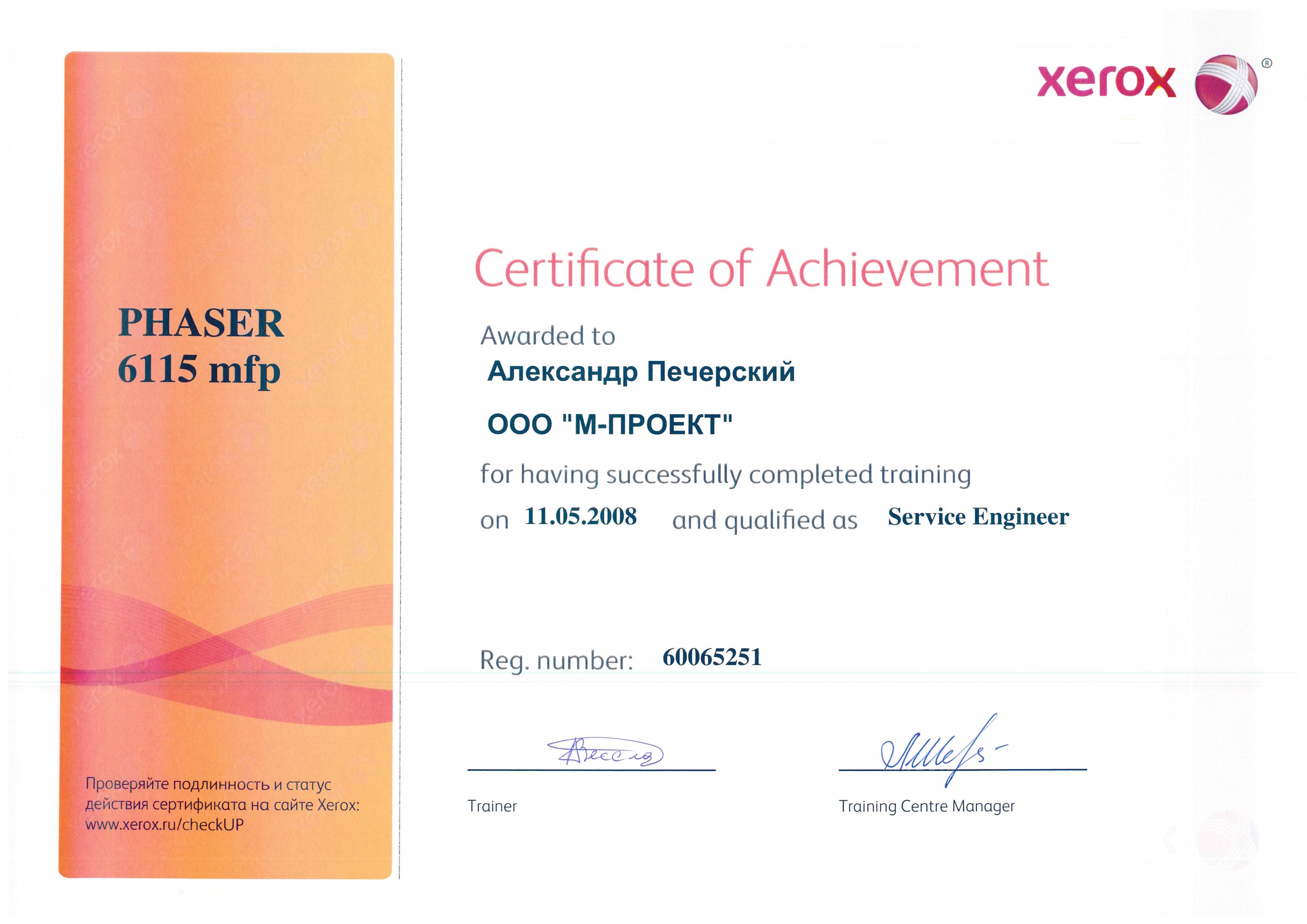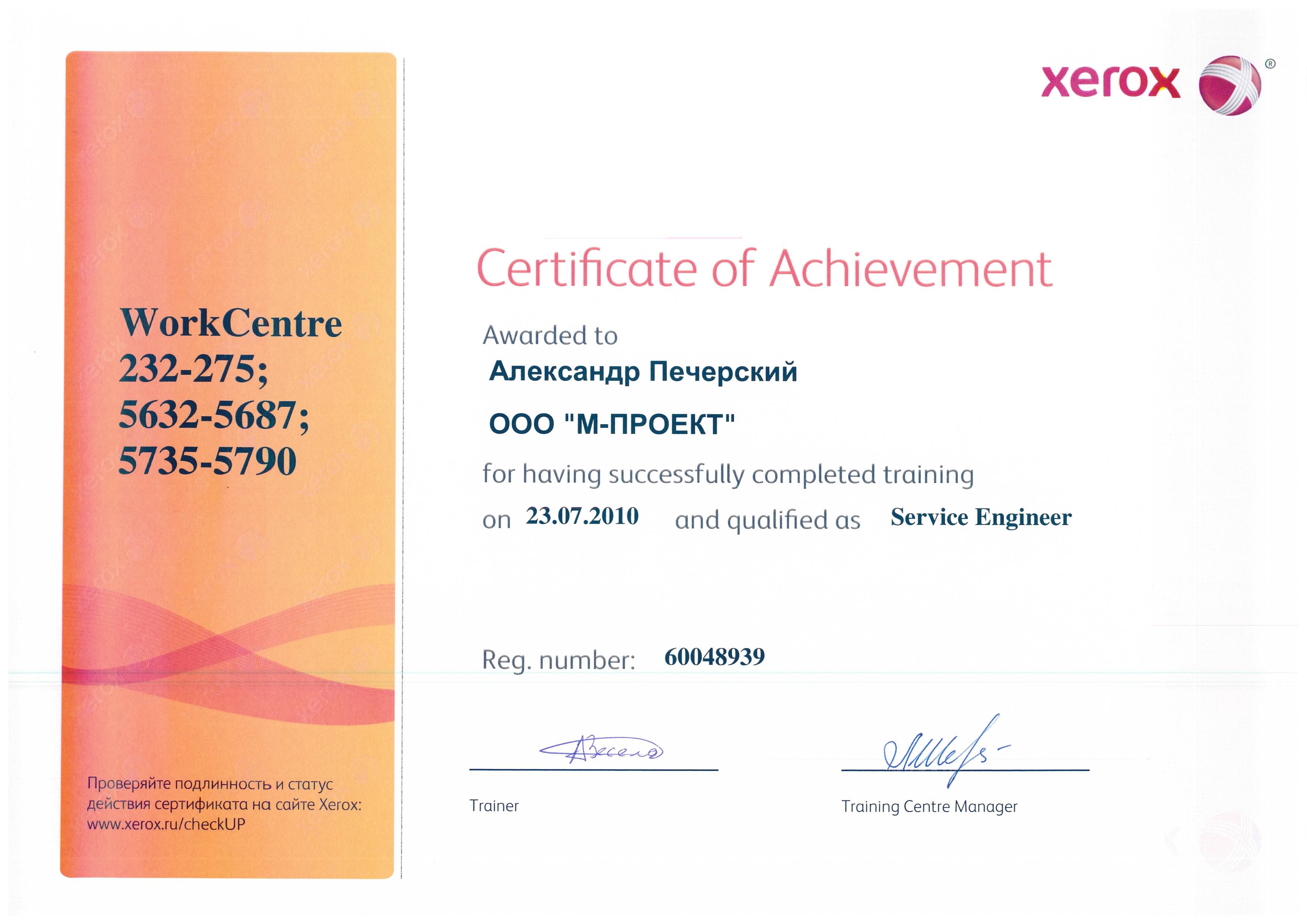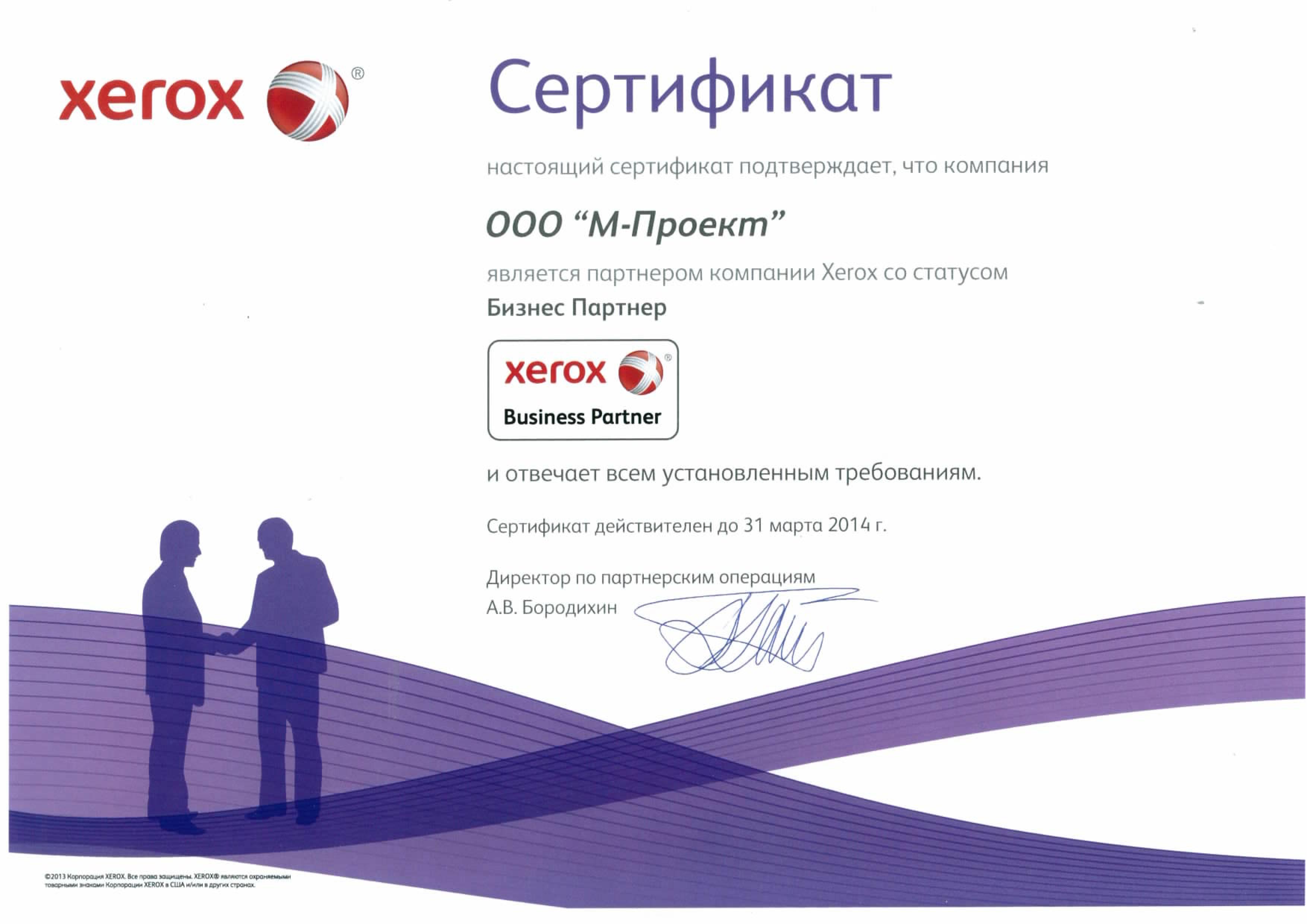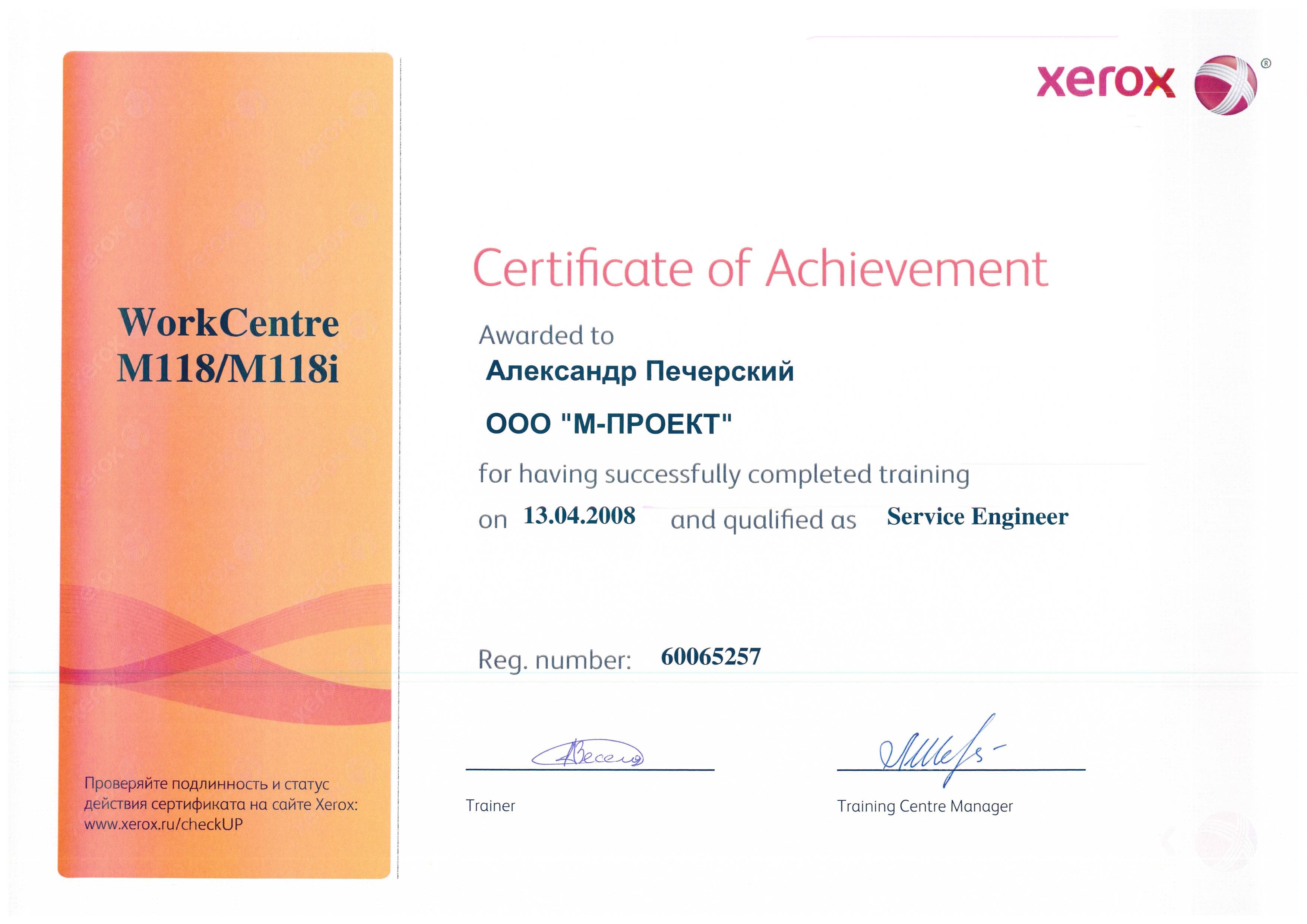 Данные сертификаты подтверждают, что компания «М-Проект» является Авторизованным сервисным и бизнес-партнером компании Xerox