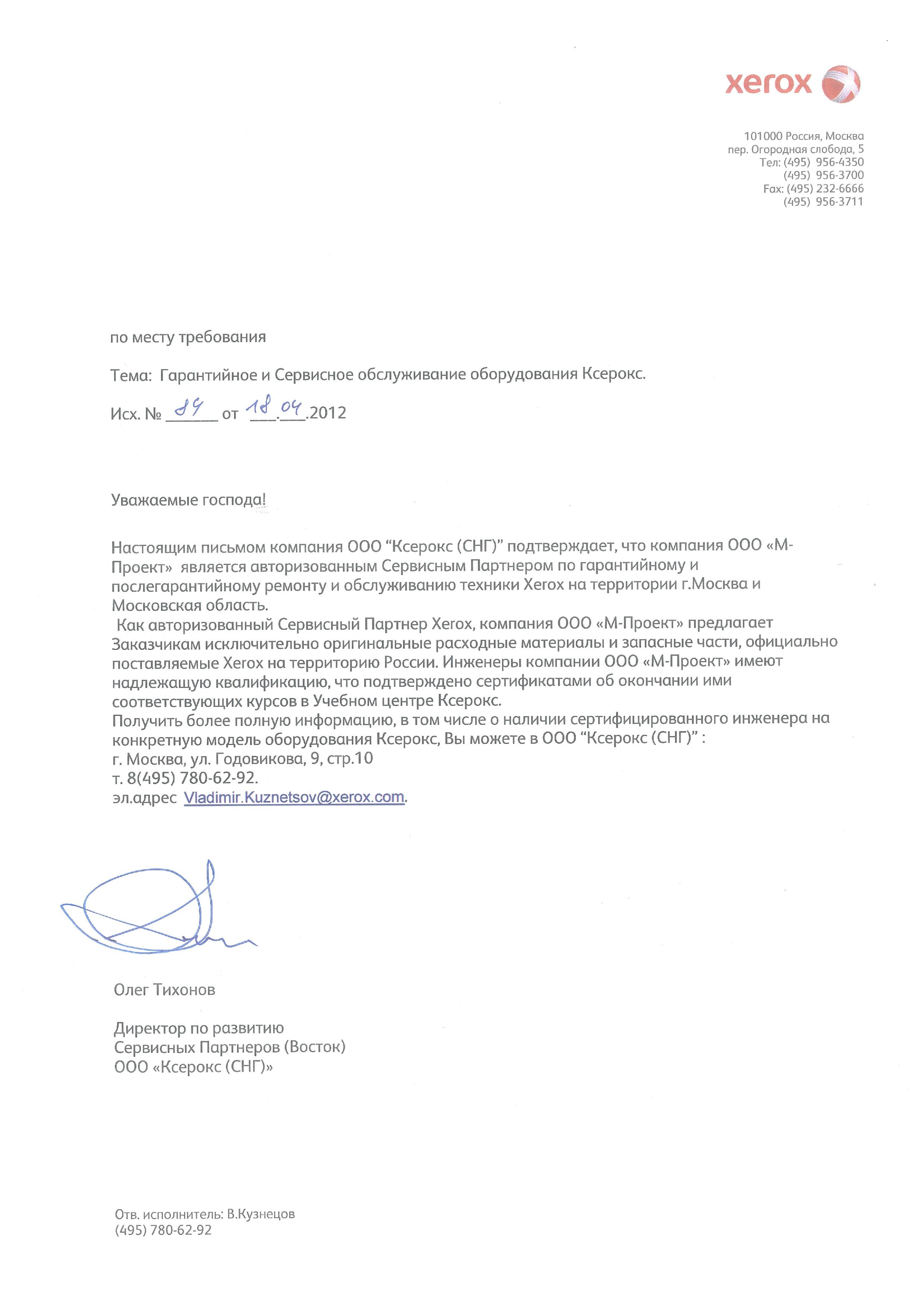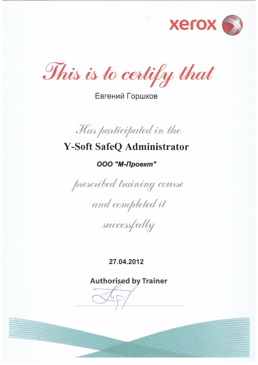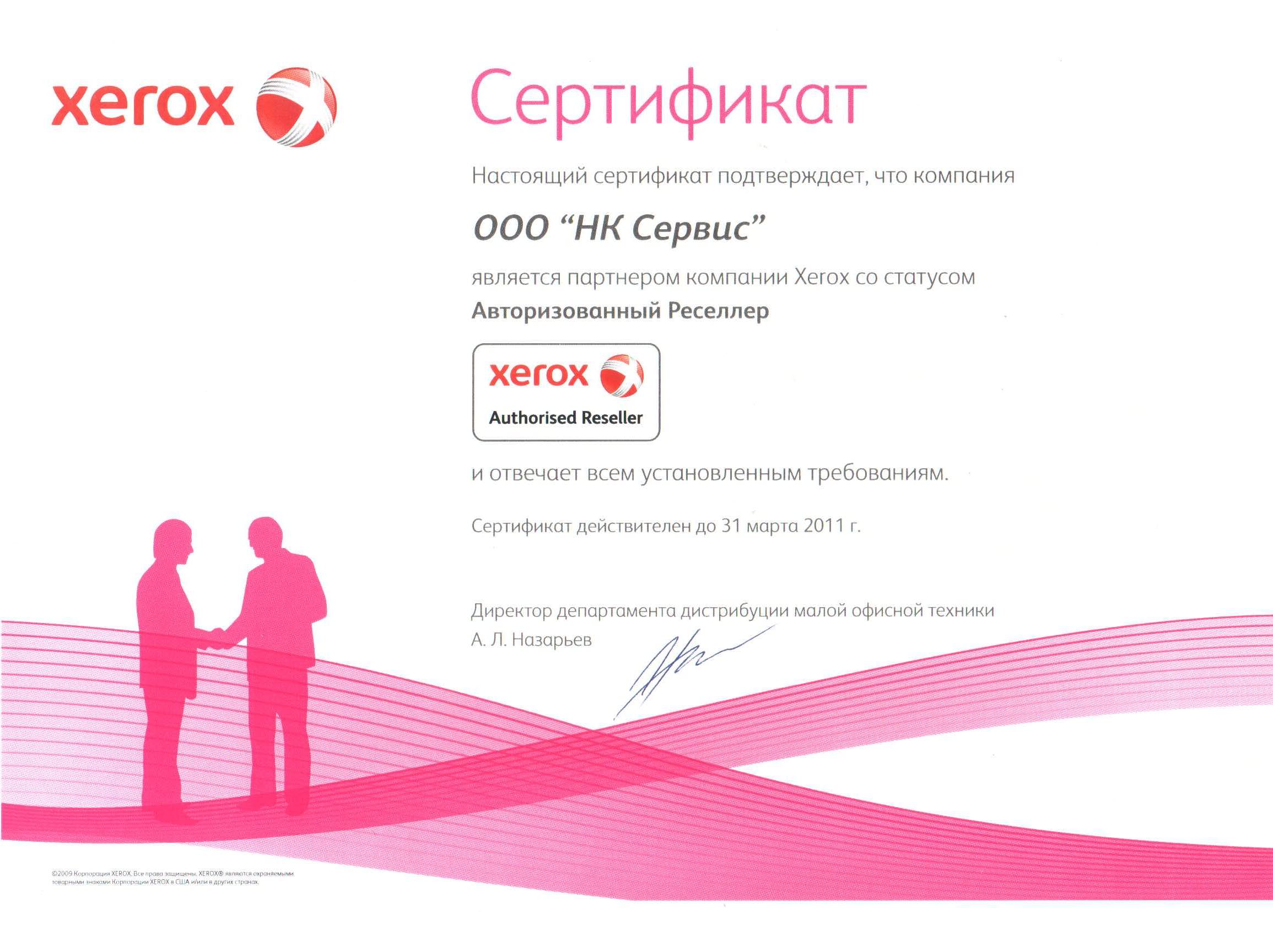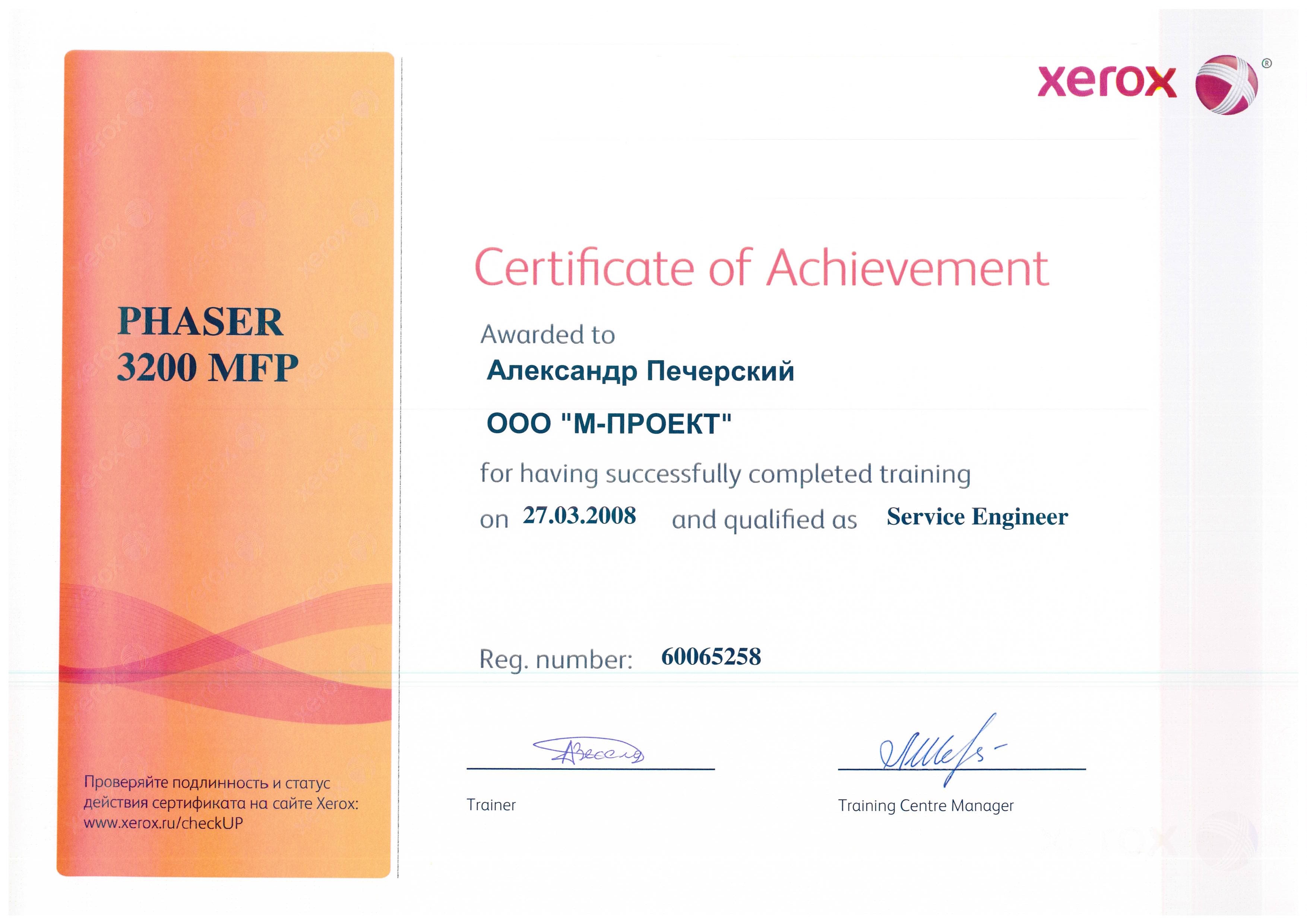 Данные сертификаты подтверждают, что компания «М-Проект» является Авторизованным сервисным и бизнес-партнером компании Xerox