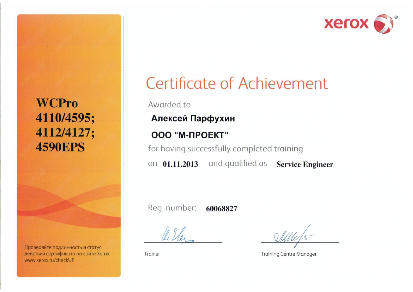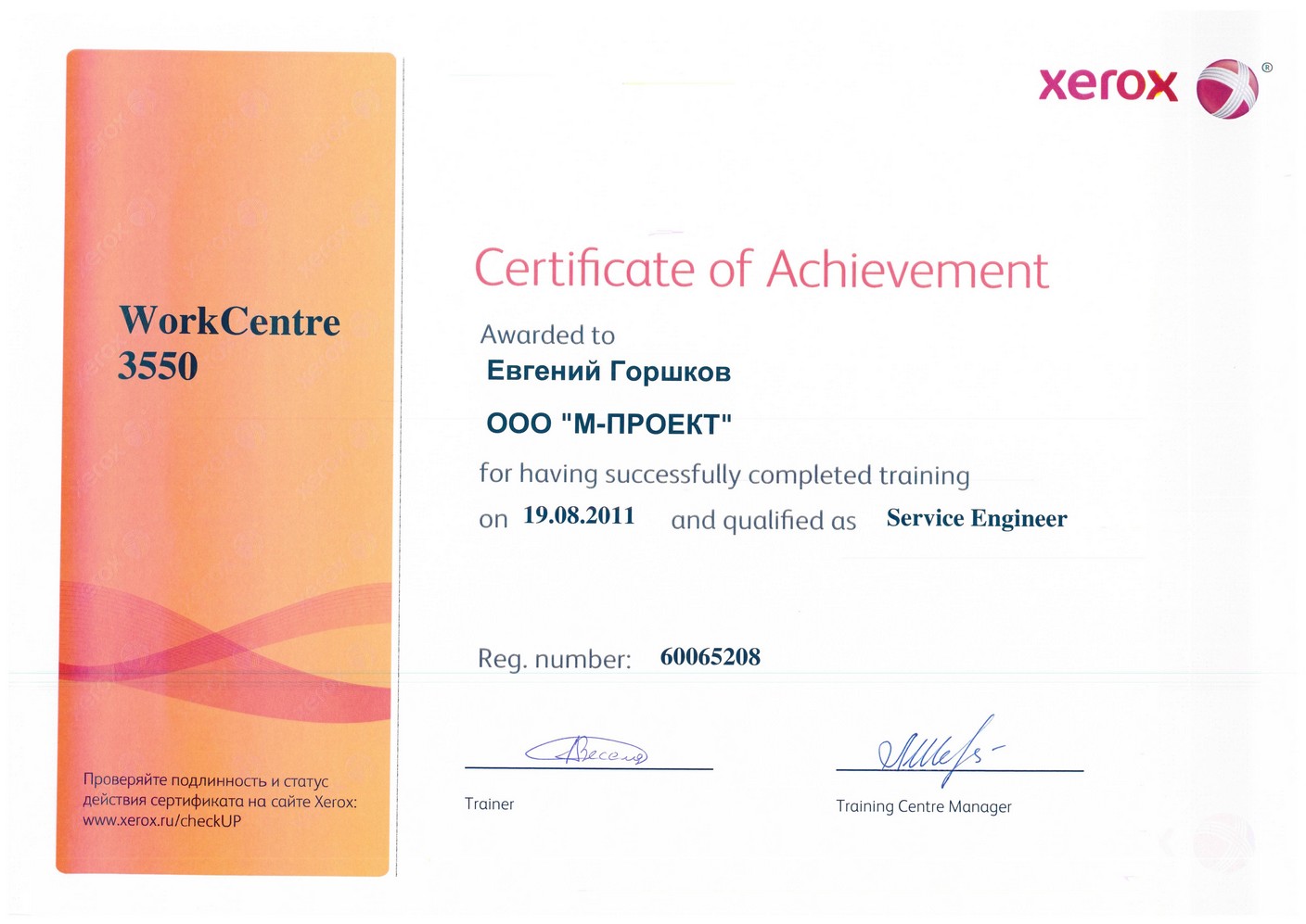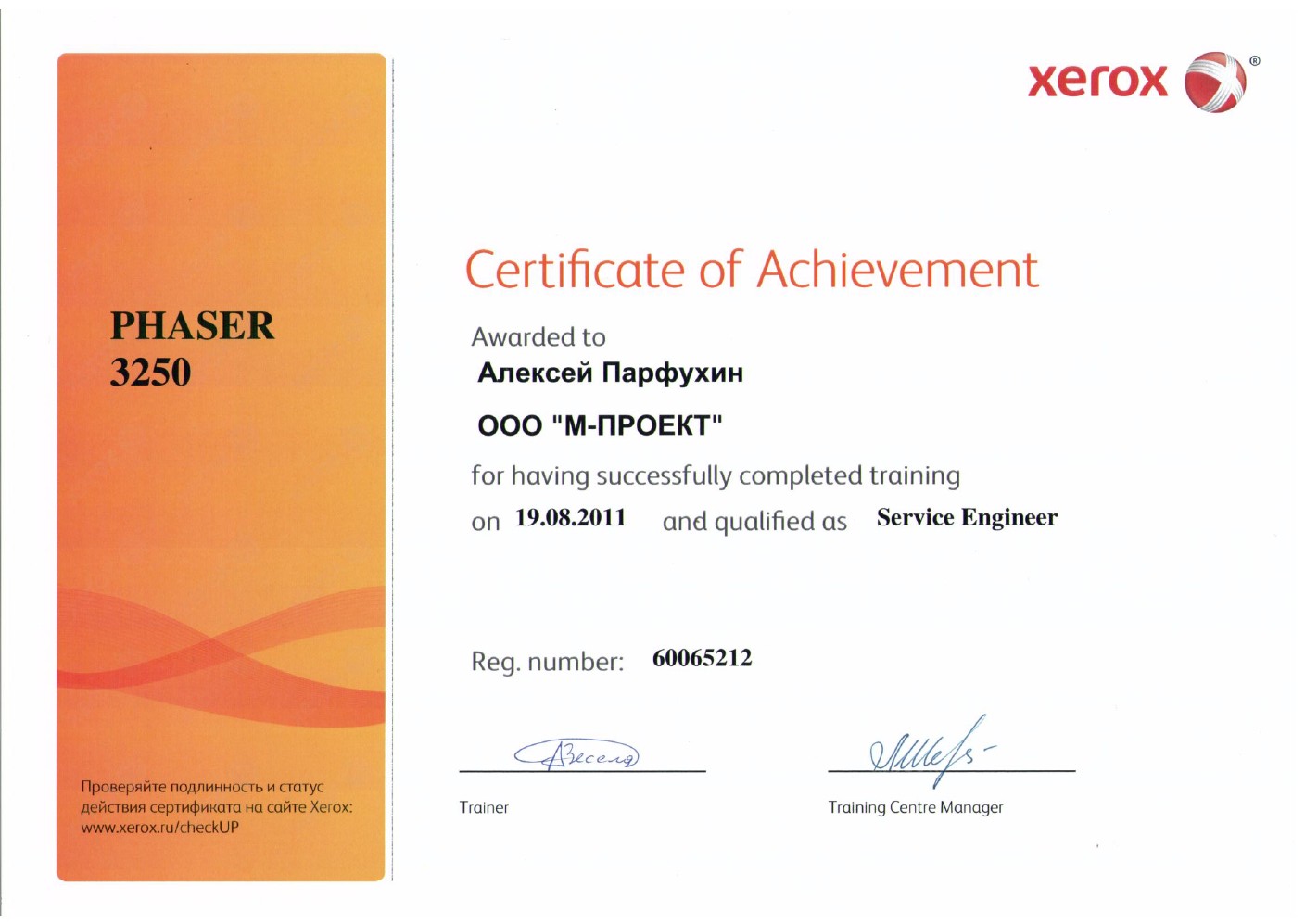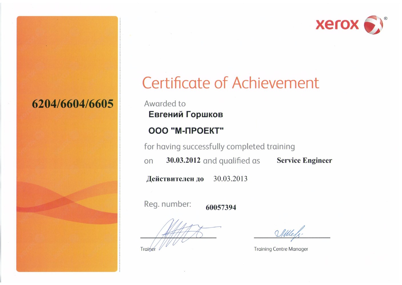 Данные сертификаты подтверждают, что компания «М-Проект» является Авторизованным сервисным и бизнес-партнером компании Xerox