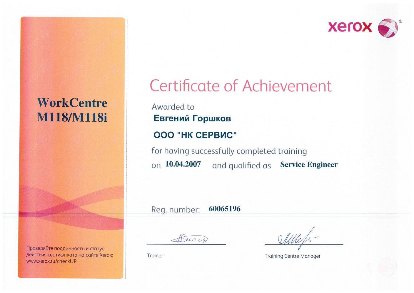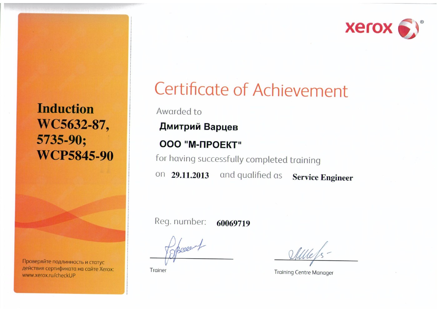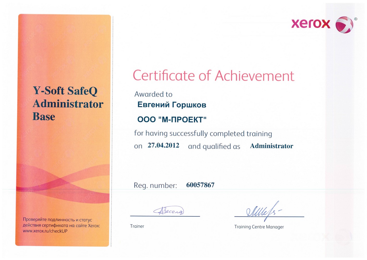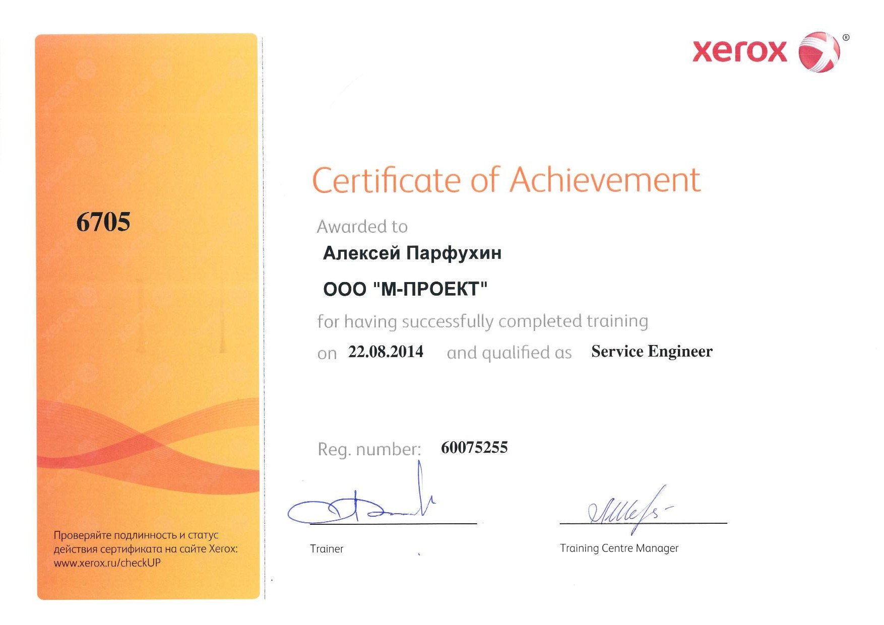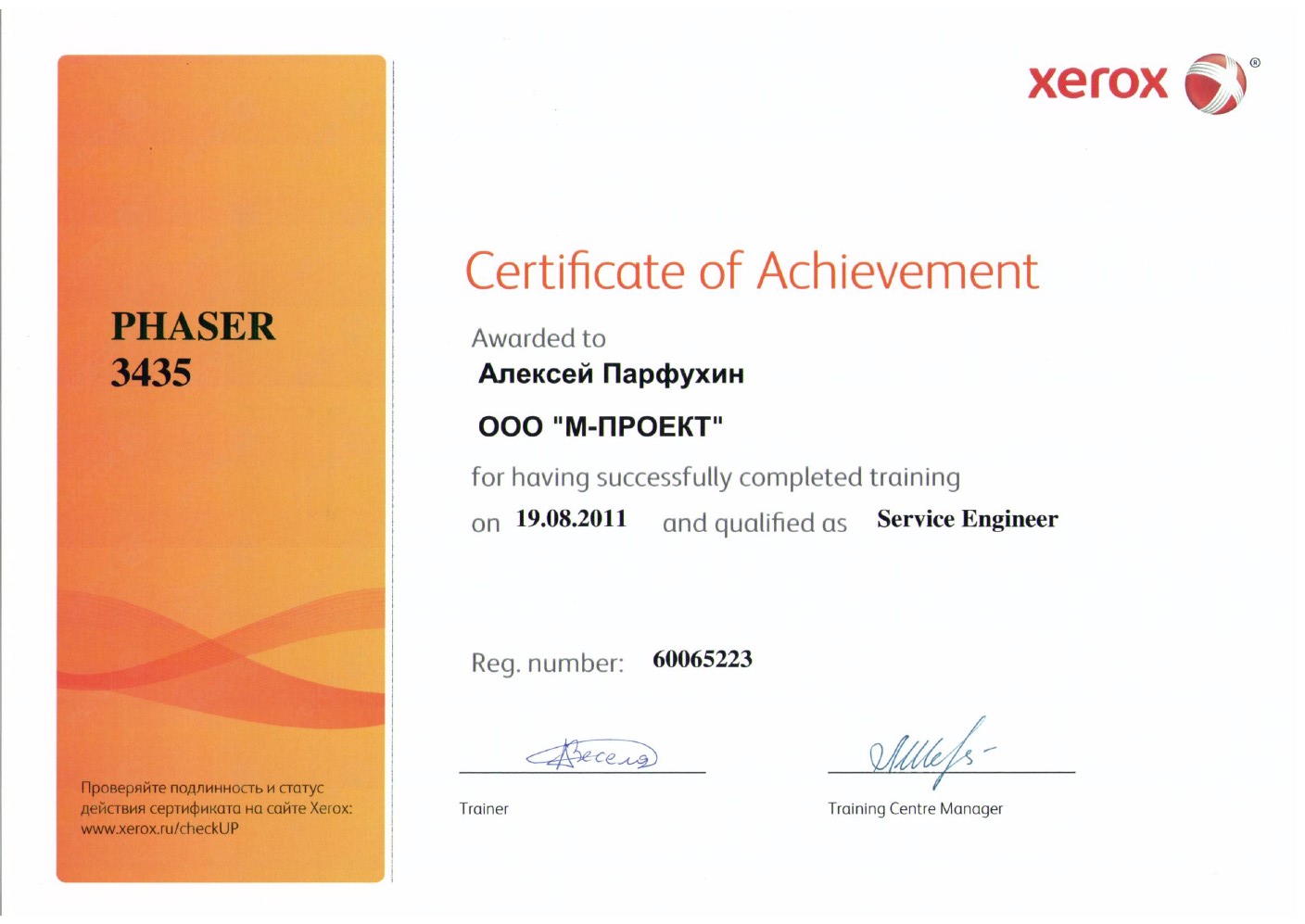 Данные сертификаты подтверждают, что компания «М-Проект» является Авторизованным сервисным и бизнес-партнером компании Xerox